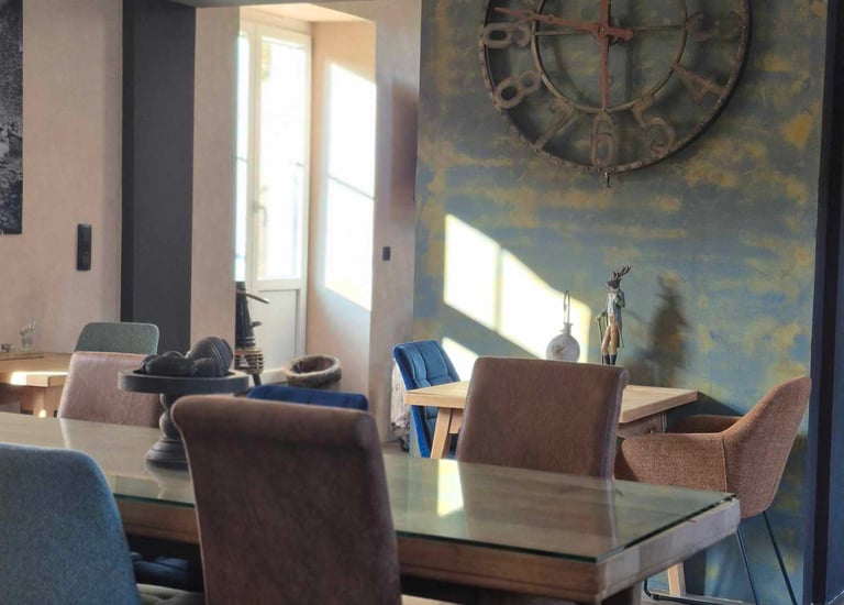 Etant une grande passionnée de cuisine et ayant suivi des cursus de formation dans des établissements de prestige comme l'Ecole Cordon Bleu à Florence et le Centre de formation Alain Ducasse à Paris , il me tenait à coeur d'accueillir nos hôtes autour de belles tablées pour de beaux moments de partage.