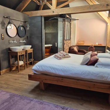 Bienvenue dans cette chambre très spacieuse qui allie le style industriel au chic !