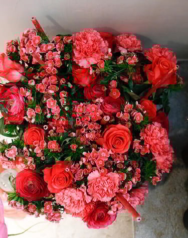 Formule romantique : Bouquet de fleurs OU coffret de chocolats pour votre moitié + 1 bouteille de "bulles belges" - 89€.