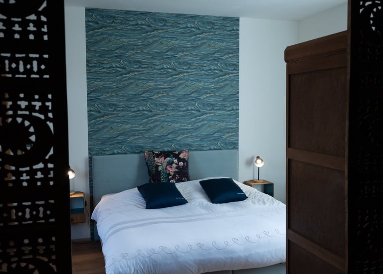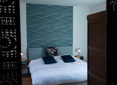 De indeling en decoratie van onze kamers vormen een ware alchemie tussen het oude en warme aspect van hout en steen en de moderne toets van glas en metaal. In onze kamers worden eigentijdse decoratieve objecten tentoongesteld, aangevuld met tweedehands meubels die in ruwe staat zijn gelaten of door ons zijn opgeknapt.